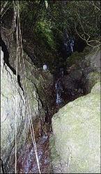 Left: This house has the perfect backdrop. Right: Water flowing along the rocks.