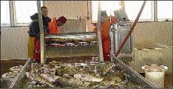 Workers remove the freshly caught cod and pack them into huge containers to be sent for processing.