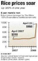 In the case of Guyana the cost of rice imported by Jamaica, up to a fortnight ago, had jumped by a third to $2,375 per 45 kg bag.