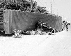 WESTERN BUREAU: A craft vendor and her family in Lilliput, St James, escaped death yesterday morning when an out-of-control trailer, ploughed through her fence and stopped a metre from her bedroom. "It was a pile of building blocks that stopped it from hitting the house," said Marcia Jacob...