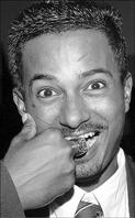 Trinidad and Tobago spinner Dave Mohammed bites into his Stanford 20/20 championship ring. He'd also like to sink his teeth into another stint in the West Indies team. - Contributed