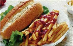A sandwich like this one, complete with fries and ketchup, is good for the athletes in the family who burn up all the calories on the field or in the pool.