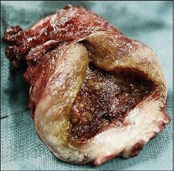 Donna's uterus that was removed during her hysterectomy, showing the cancerous cells inside.