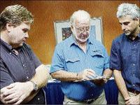 Chris Bicknell (right), group CEO and financial manager of Tank-Weld Group, chats with John Greaves (centre), director, and John Ralston, managing director, during a press conference at the Courtleigh Hotel on Thursday, September 28, 2006. - photos by Rudolph Brown/Chief Photographer