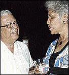 Businessman Winston Dear gives his wife Denise a look of affection while they converse.