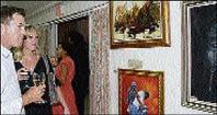 Visiting from Manhattan Beach, California, Crystal and Jay Dye seem captivated by Nelton Frazer's 'I Cry', which was part of the Island Expressions exhibit at the Tryall Club last Monday night.- Photos by Denise Reid