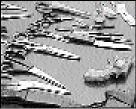 Some of the weapons recovered from a Corporate Area school on display at the Half-Way Tree Police Station in St Andrew yesterday. - Ricardo Makyn/Staff Photographer