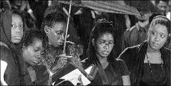 Reverend Maria Harbajan of the National Intercessory Prayer Network stands out as she dances and sings in worship.
