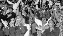 After delivering his sermon, Jakes issued an altar call to persons who wanted to dedicate their lives to God and be in His service to transform the nation. Thousands came forward.