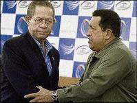 Jamaica's prime minister, Bruce Golding (left), shakes hands with Venezuela's president, Hugo Chavez, during the summit of Latin American and Caribbean leaders in Costa do Sauipe, Brazil on Wednesday.