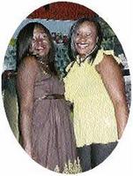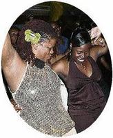 Michelle Wilson-Reynolds (left) and Claudine Douglas heat up the dance floor at the party.