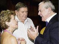 Diana Stewart of Stewart's Auto Sales chats with Howard Johnson (right) while her husband Richard Stewart looks on. - Photos by Colin Hamilton/freelance photographer