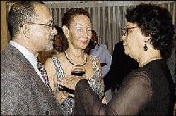 Mrs Vilma Baugh (right), chats with Dorothea Smith and Rajiv Bakshi at the farewell reception.