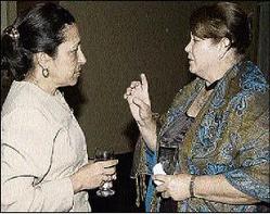 Ambassador for the Dominican Republic Filomena Navarro (right), makes a point to Cuban Ambassador Gisela Garcia.