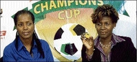 Sharon Roper (right), director of marketing, Flow Jamaica, makes the draw for the teams in the second round of the Flow Champions Cup, while Joy Bennett, marketing officer, Jamaica National Building Society, looks on. - Norman Grindley/Chief Photographer