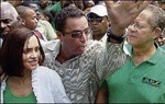 LEFT: Daryl Vaz (centre), Jamaica Labour Party candidate in the upcoming by-election for the West Portland constituency, is flanked by Prime Minister Bruce Golding (right) and his wife, Ann-Marie, on nomination day, last Friday.