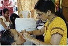 CENTRE: Rosmary Moore has her upper lip threaded (hairs removed with thread) by Alka Kulkarni.