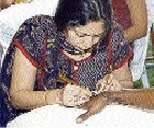 RIGHT: One of the big highlights for women at the festival was having Priya Anaokar do the Mehndi on their hands.